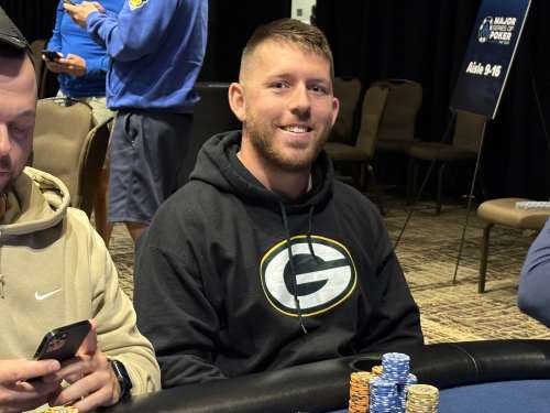 Travis Young of Fort Atkinson, WI leads the remaining 51 from a starting field of 460 runners in Event #1: $400 - 100 GRAND STACK NLH Day 1A at Potawatomi Casino!