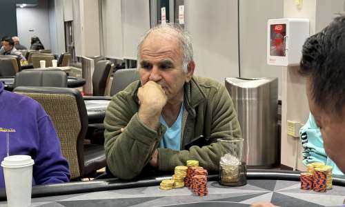 D.D. (Daryoush Daghighian) bagged the chip lead in Event #5: $400 Mini Main NLH Day 1A with 582,000 which saw 33 of 296 runners advancing to Day 2 at Running Aces!